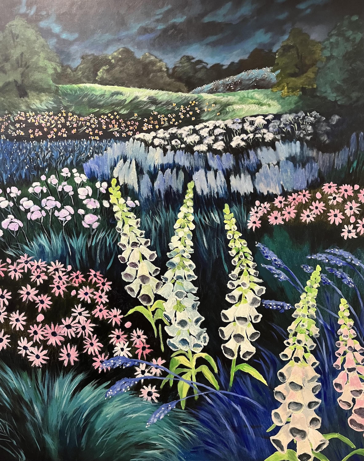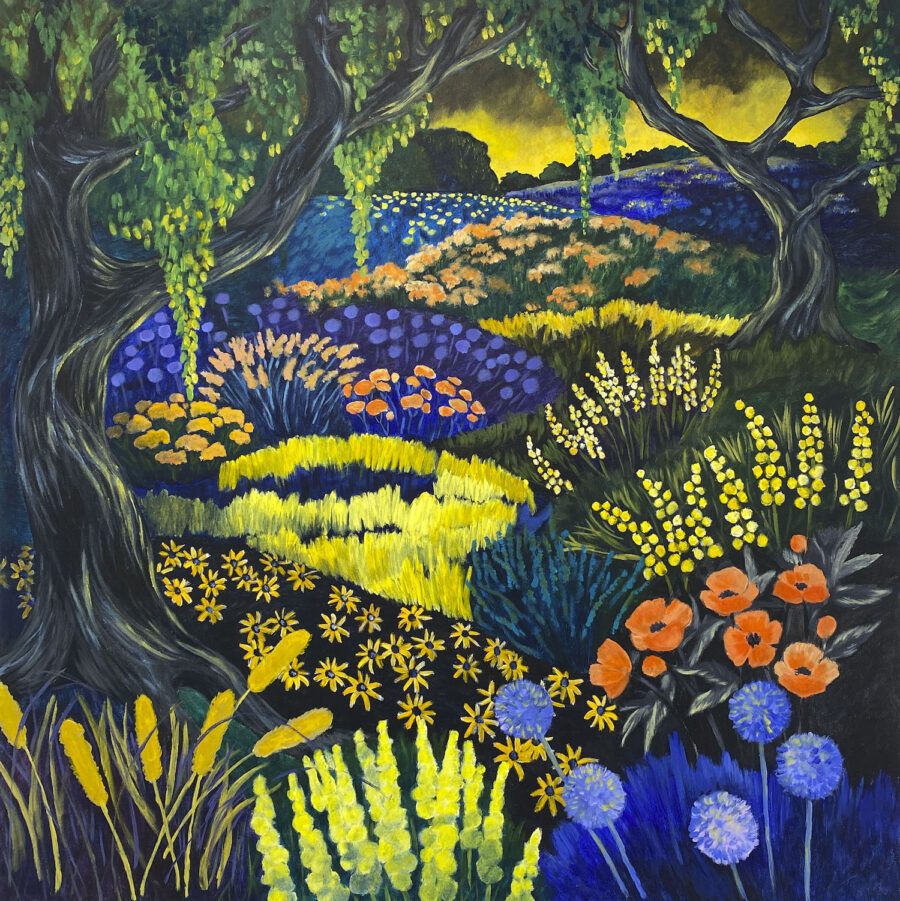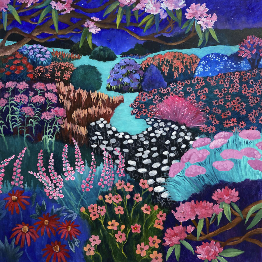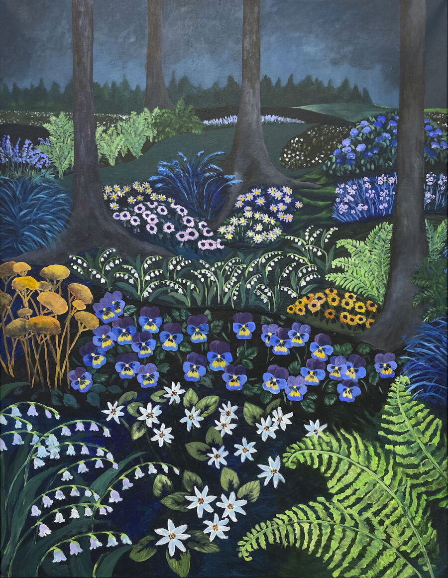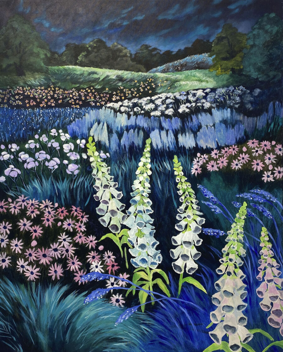 Kuvataiteilija Elise Perttulan näyttely Nightbloomers, Yönkukkijat kutsuu katsojan satumetsiin ja kukkakedoille, joissa pimeys ei peitä vaan raottaa unelmien huntua.