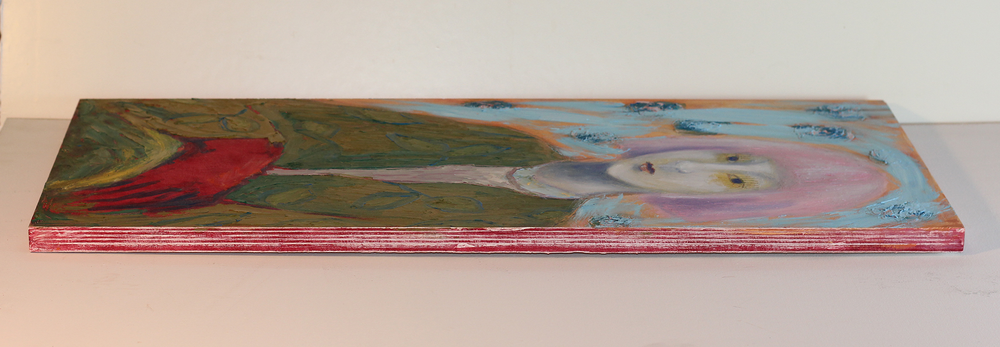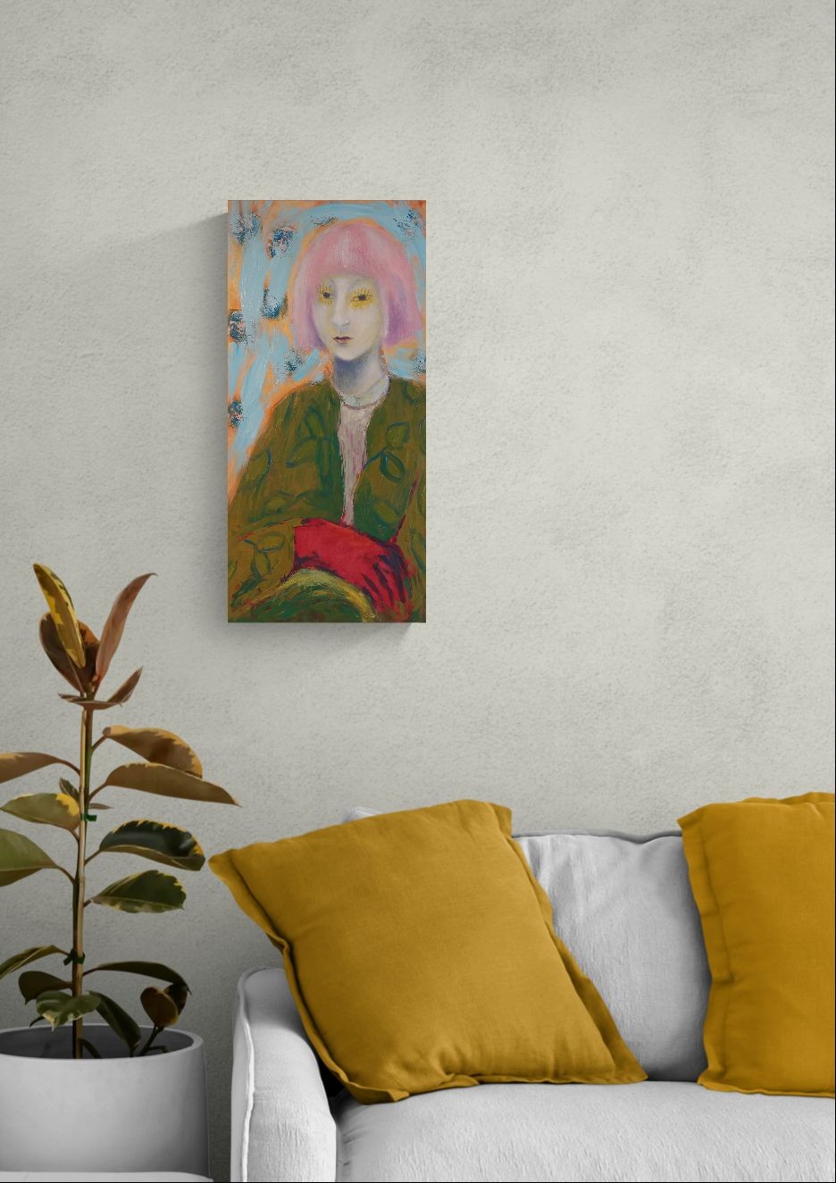Tämä persoonallinen öljyvärimaalaus sopii nykytaiteen ystävälle, joka arvostaa feministisiä teemoja ja pitää symbolistisen taiteen hiljaisesta avautumisesta katsojalle.