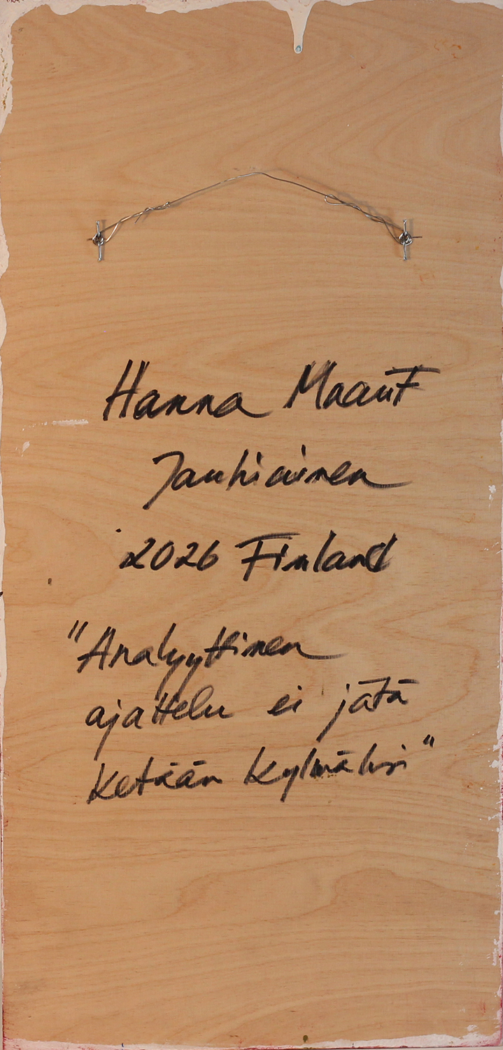 Analyyttinen ajattelu ei jätä ketään kylmäksi -teos kertoo sisäisestä voimasta, mietiskelystä ja tunteiden älyllisestä syvyydestä. Feministinen öljyvärimaalaus on maalattu puulle rohkein ja intuitiivisin siveltimenvedoin, tyyli on ekspressionistinen ja symbolistinen. Tekniikkana on hyödynnetty myös sgraffitotyöskentelyä.