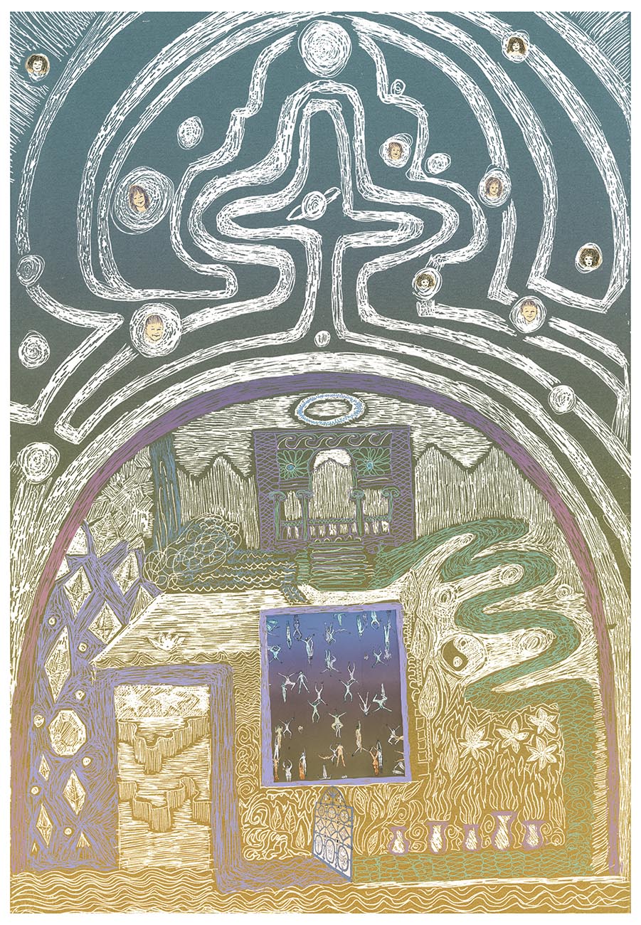 ”Kaikki näyttelyssä olevat teokset pohjautuvat etsaukseen, akvatintaan, piirtämiseen, monotypioihin sekä sekatekniikoihin. Kaikki teokset ovat pigmenttivedoksia Hahnemuhlen 100 %:n puuvillapaperille, jonka pitäisi säilyttää värinsä ainakin 200 vuotta”.