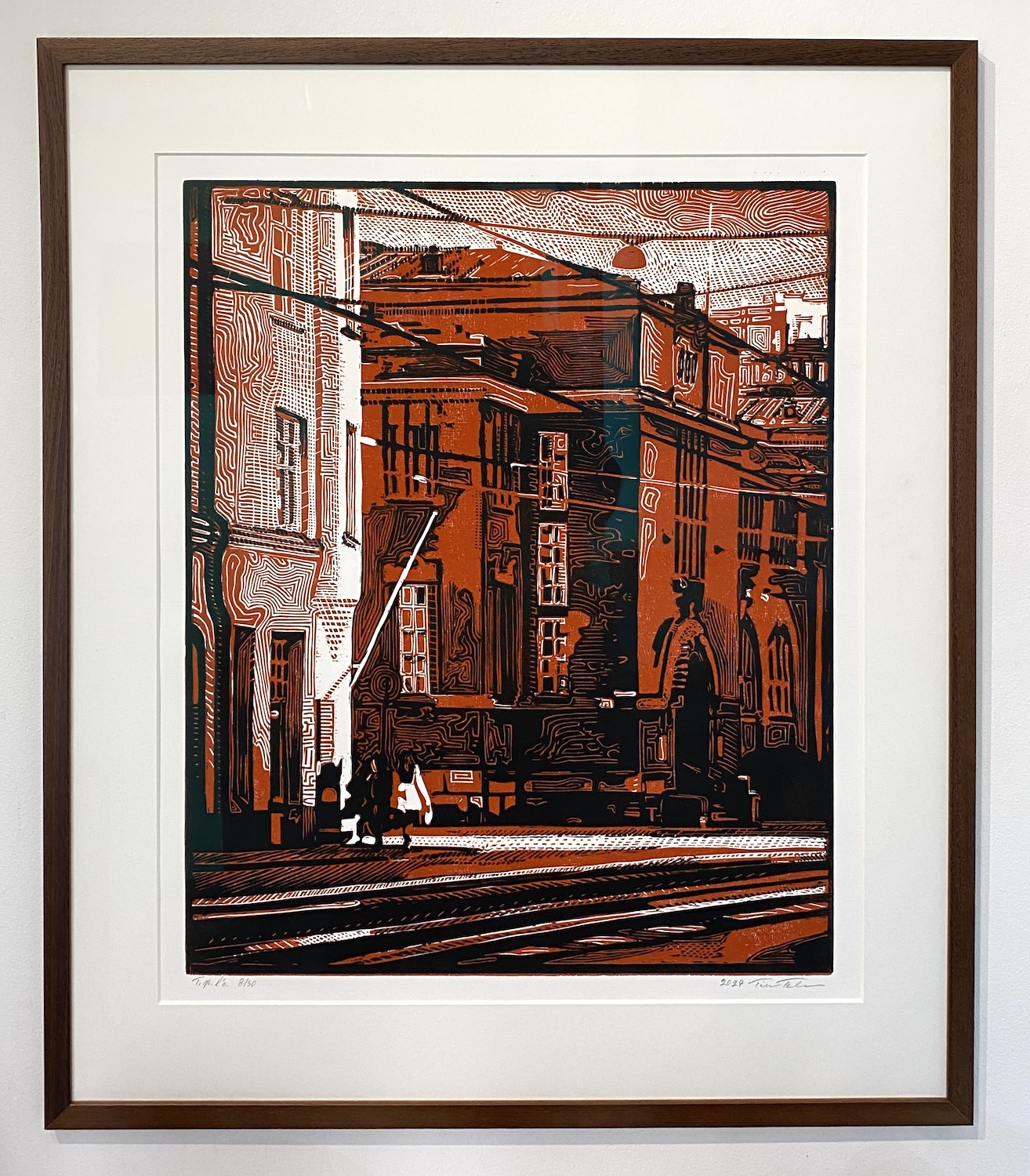 1 kpl (tpla 8/50) valmiiksi kehystettynä (priima, tummanruskea kehys ja paspartuu, heijastamaton museolasi)
