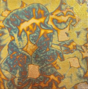 2018 15 x 15 x 5 cm Maalaus, kangaspohja, lehtimetalli, öljy 280 € tai 20 €/kk