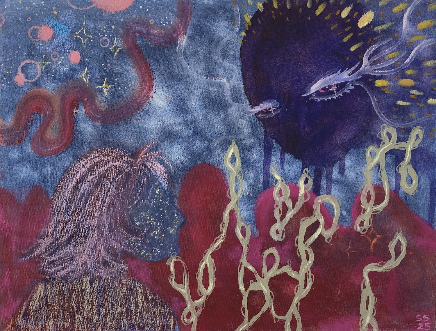Arcanum -näyttely kutsuu katsojan tulkitsemaan teoksia omista lähtökohdistaan, ilman valmiita vastauksia. Maalaukset pohjautuvat taiteilijan henkilökohtaiseen symboliikkaan, mutta niiden merkitykset jätetään avoimiksi katsojan omille tunteille ja havainnoille. Mysteeriä vaalitaan tietoisena valintana, sillä abstraktia ja esittävää yhdistävät maalaukset jättävät tilaa intuitiolle, pohdinnalle ja avoimiksi jääville kysymyksille — kaikkeen ei aina tarvitse löytyä selitystä.