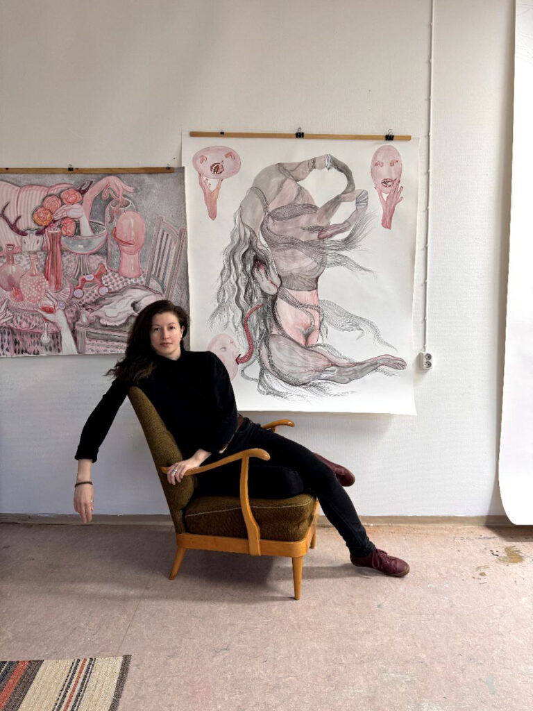 The themes of my works explore the depths of the subconscious and are closely linked to social and mythological connotations. Through death and birth, I connect with people where they are vulnerable.